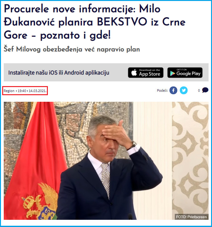 Isti narativ da je predsjednik Đukanović trebalo da napusti državu plasiran je na portalu Alo i tokom parlamentarnih izbora 2020. U tekstu je tada prenesena izjava advokata Gorana Petronijevića da Milo Đukanović ima spremne helikoptere na tri lokacije koji bi trebalo da ga prebace u Albaniju ukoliko pretrpi izborni poraz.